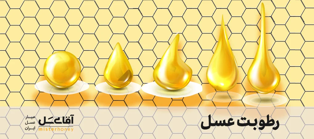 یکی از اجزا مهم عسل را آب تشکیل می دهد و ویژگی های متعدد فیزیکی و شیمیایی عسل از جمله میزان غلظت و قوام عسل، مدت زمان انبارداری و گرانروی عسل مرتبط با میزان آب یا همان رطوبت عسل است. شهدی که در گل ها تولید می شود و زنبورعسل آن را جمع آوری می کند سهم عمده اش را آب تشکیل است به نحوی که 45 تا 75 درصد شهد از آب تشکیل شده است. از آن جایی شهد به دلیل میزان نمناکی بالا فسادپذیری بالایی دارد زنبورعسل سعی در کاهش میزان آن را دارد و با فرآوری خاصی که روی آن انجام می دهد آب اضافی شهد را تبخیر می نماید و رطوبت عسل را به زیر 20 درصد کاهش می دهد.