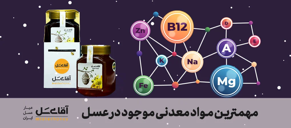 عسل های مختلف می توانند عناصر معدنی متفاوتی داشته باشند اما به طور کلی در عسل هایی مثل عسل گون میزان عناصری همچون آهن و سلنیوم بالا است و در عسل های تیره رنگ همچون عسلک ترنگبین، عسل شوید، عسل خلیلو و عسل کنار مقادیر بالاتری از عناصر معدنی وجود دارد.